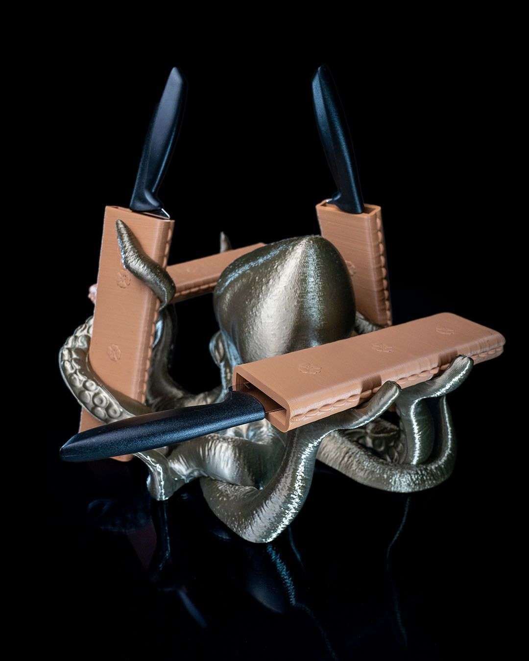 Een uniek designmeesterwerk betreedt het culinaire podium: de decoratieve messenstandaard in de vorm van een octopus. Deze fascinerende keukenhulp combineert functionaliteit met creatieve flair en geeft je keukenapparatuur een vleugje onderwatermystiek.